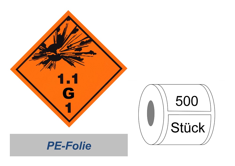 Gefahrzettel 100x100 PE-Folie - Gefahrgutklasse 1.1 G