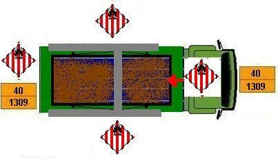 Absetzcontainer mit UN 1309 (Aluminium-Pulver, überzogen) Der Absetzcontainer ist rundherum mit Großzetteln (Placards) zu kennzeichnen.