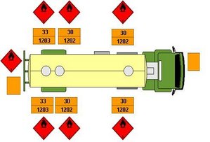 “Beförderungseinheiten”, in denen z.B. lose Schüttgüter transportiert werden, bei Tankfahrzeugen sowie bei Aufsatzcontainern oder Batterie-Fahrzeugen sind ggf. orangefarbene Ziffern-Warntafeln und zusätzliche Gefahrzettel (Großzettel oder Placards) anzubringen.