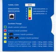 Die Tunnel werden in insgesamt fünf Kategorien (A bis E) unterteilt. Die Beschränkung eines Tunnels ist durch das Verbotszeichen Nr. 261 der StVO (Straßenverkehrsordnung) gekennzeichnet. (Beispiel oben : für Kategorie “E”)