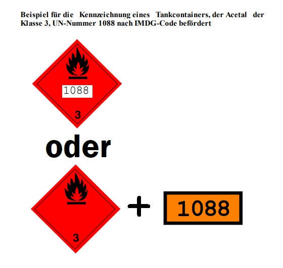 Für einen Container, der im Seeverkehr befördert wird, sind nach IMDG in bestimmten Fällen Kennzeichnungen mit der UN-Nummer erforderlich.