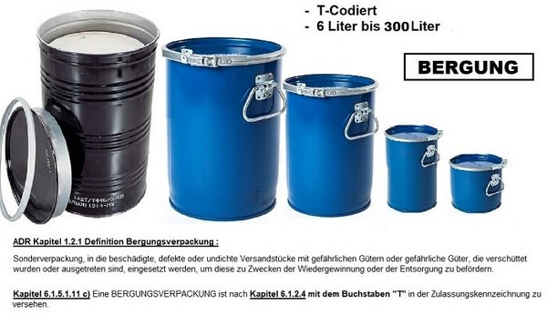 Gemäß Kapitel 6.1.5.1.11 c) ist eine BERGUNGSVERPACKUNG nach Kapitel 6.1.2.4 mit dem Buchstaben "T" in der Zulassungskennzeichnung zu versehen.