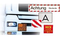 So sind z.B. Park-Warntafeln, Warnungen vor "überhängenden Lasten" und viele weitere Schilder und Markierungen verfügbar.