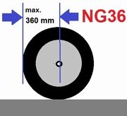 Unter der Nenngröße "NG 36" ist der Halbmesser des Reifens bis maximal 360mm zu verstehen.