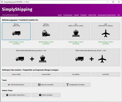 SimplyShipping - ADR-Beförderungspapiere zur "Offline"-Erstellung