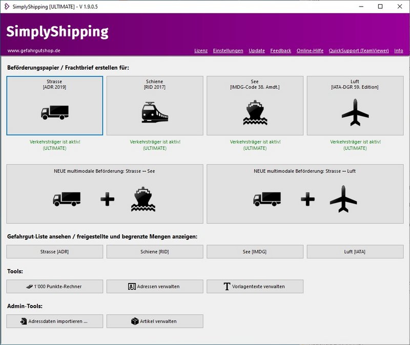 ULTIMATE-Lizenzen (Verkehrsträger STRASSE + SCHIENE + SEE + LUFT)